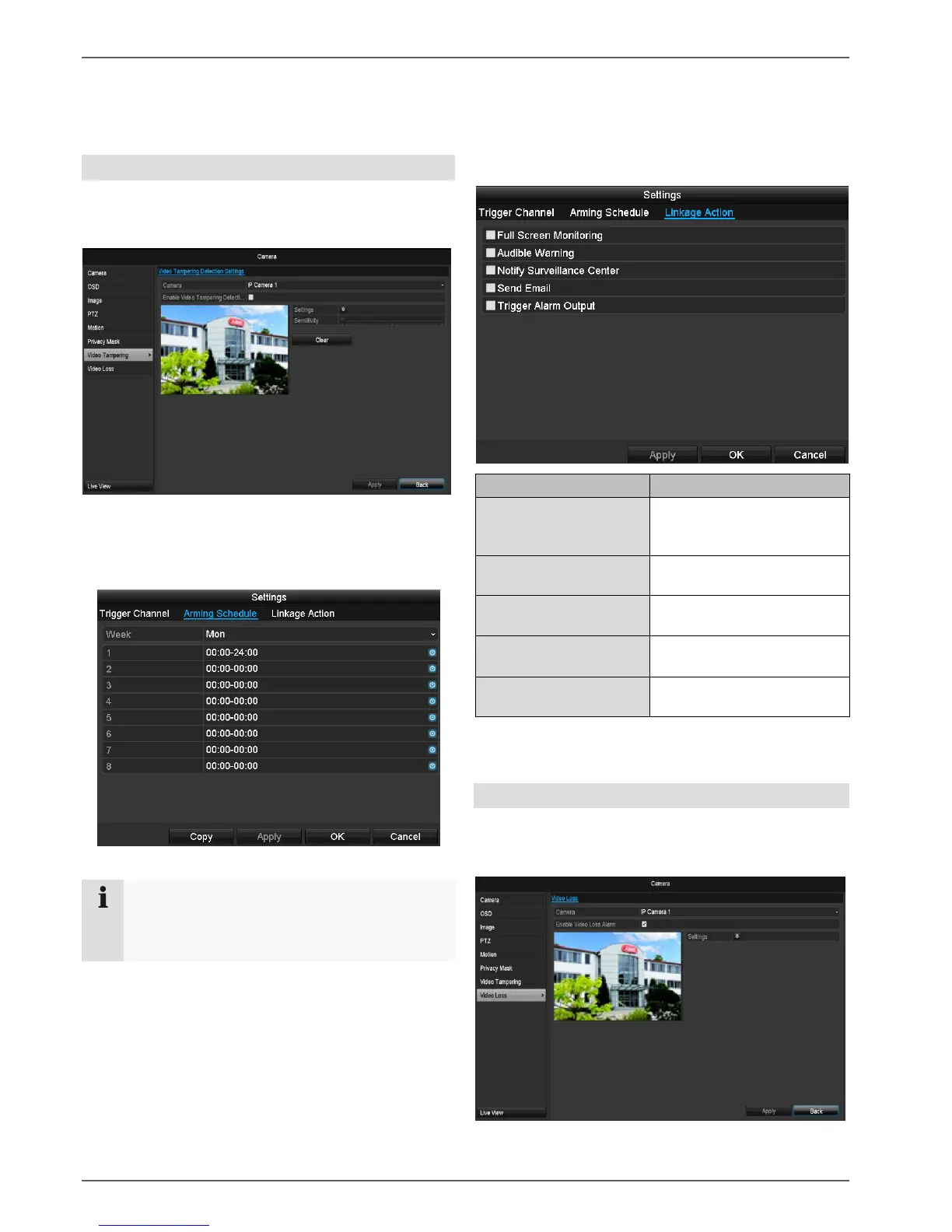Set the checkmark for the alarm in the event of a “Video