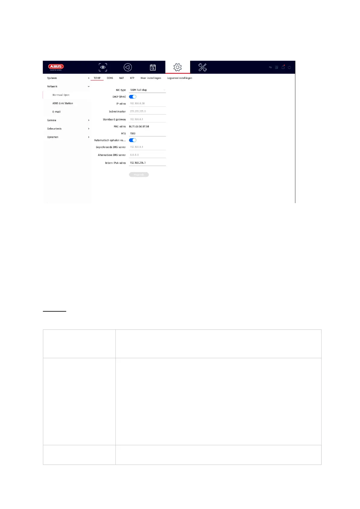 aangezien de parameters via DHCP worden verkregen.