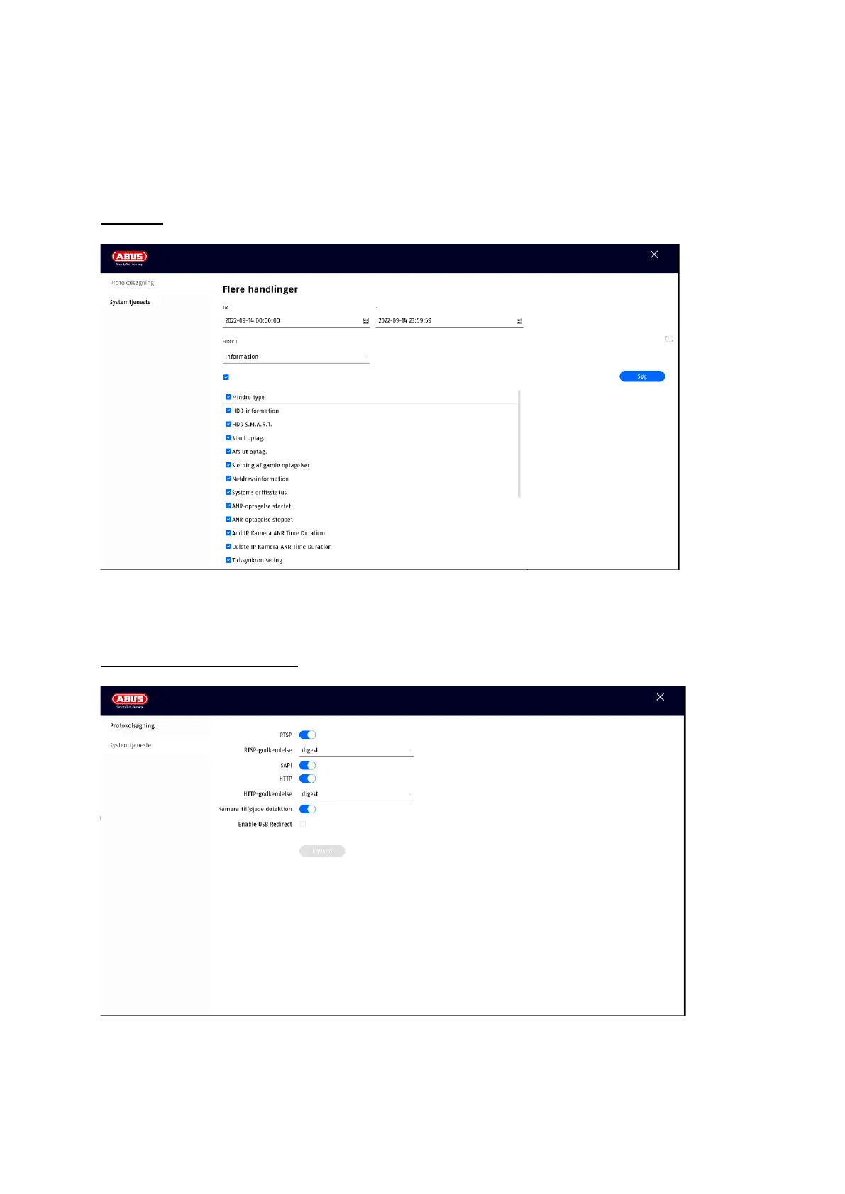 Abus TVVR36301 - Avancerede Indstillinger; Indstillinger for Vedligeholdelse; Logbog