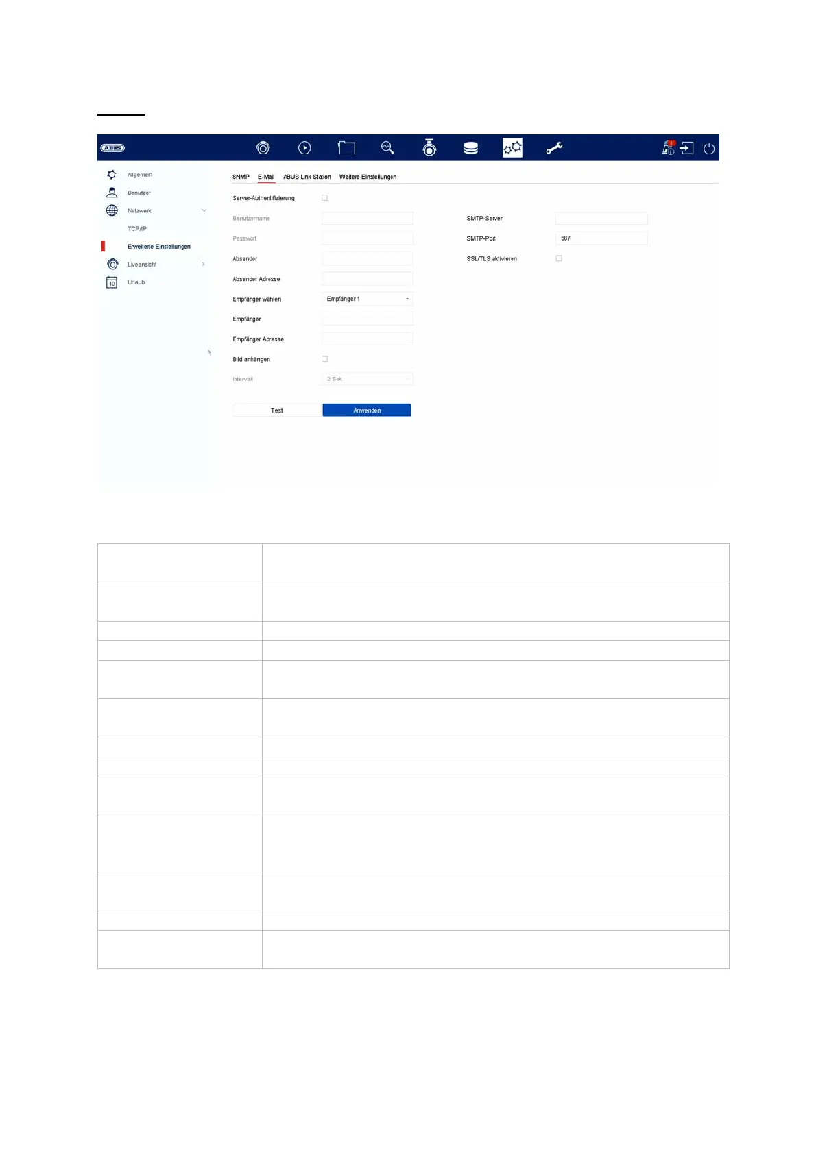 In einem Alarmfall kann das Gerät eine Nachricht per Email versenden. Geben Sie