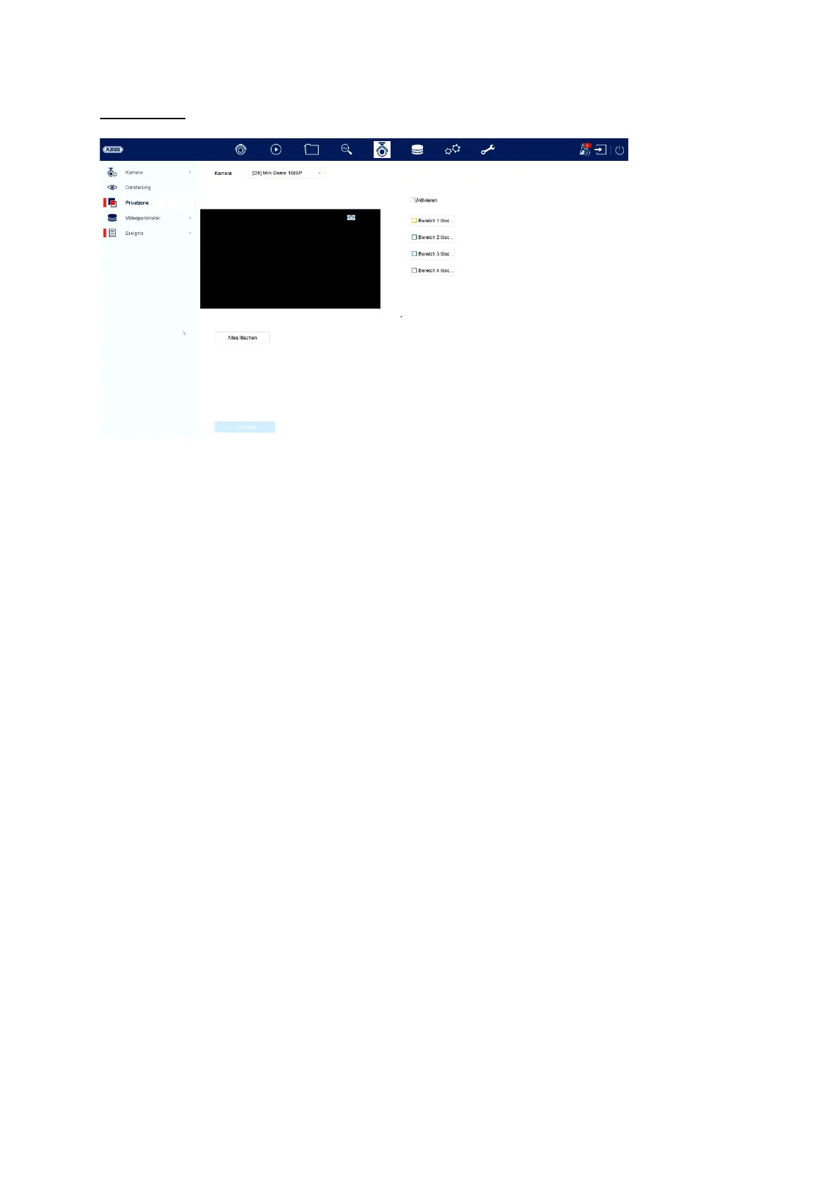Hier können Sie pro Kamera bis zu 4 Privatzonen erstellen. Durch Klicken auf die