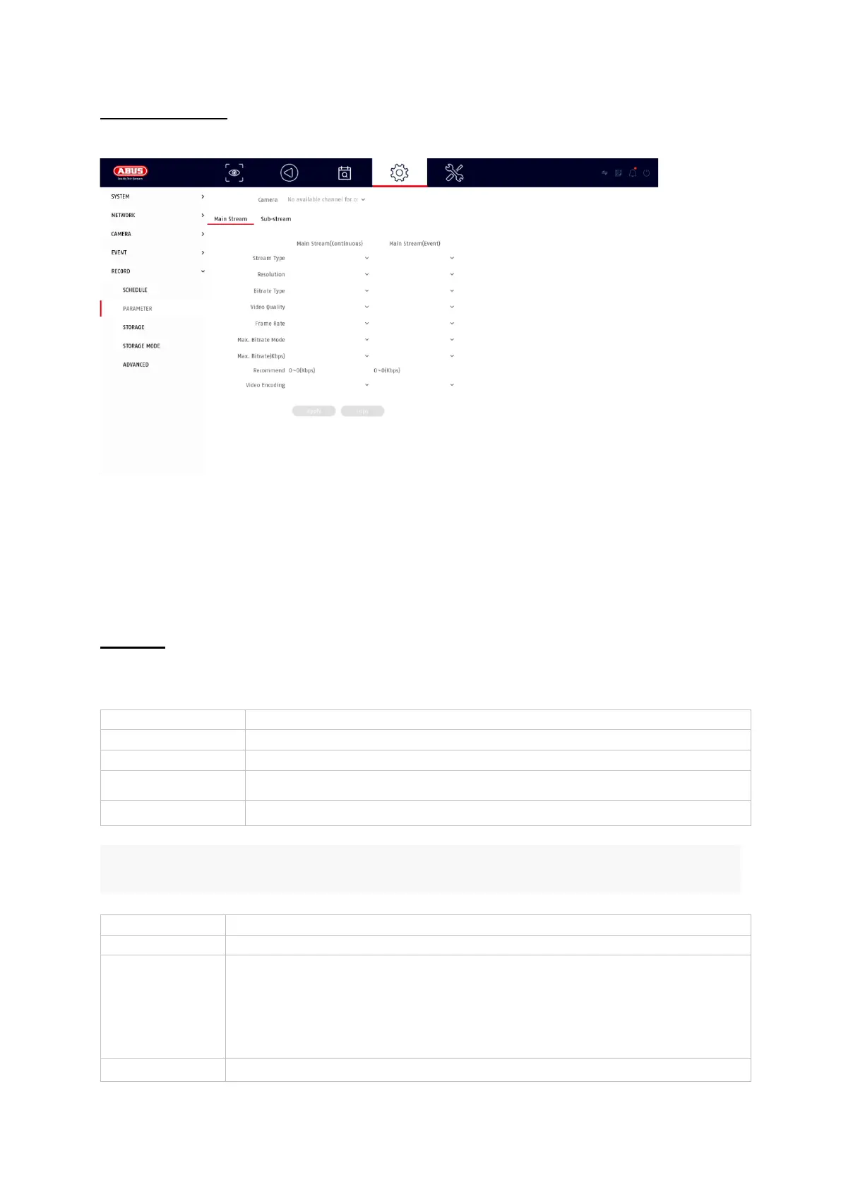 Here you can adjust the video parameters for stream 1 and 2.
