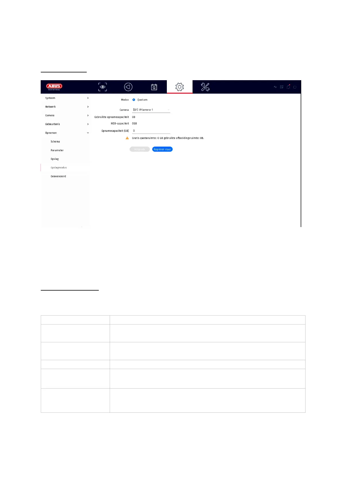 In dit menu stelt u de opslagmodus van de recorder in. Er zijn twee verschillende