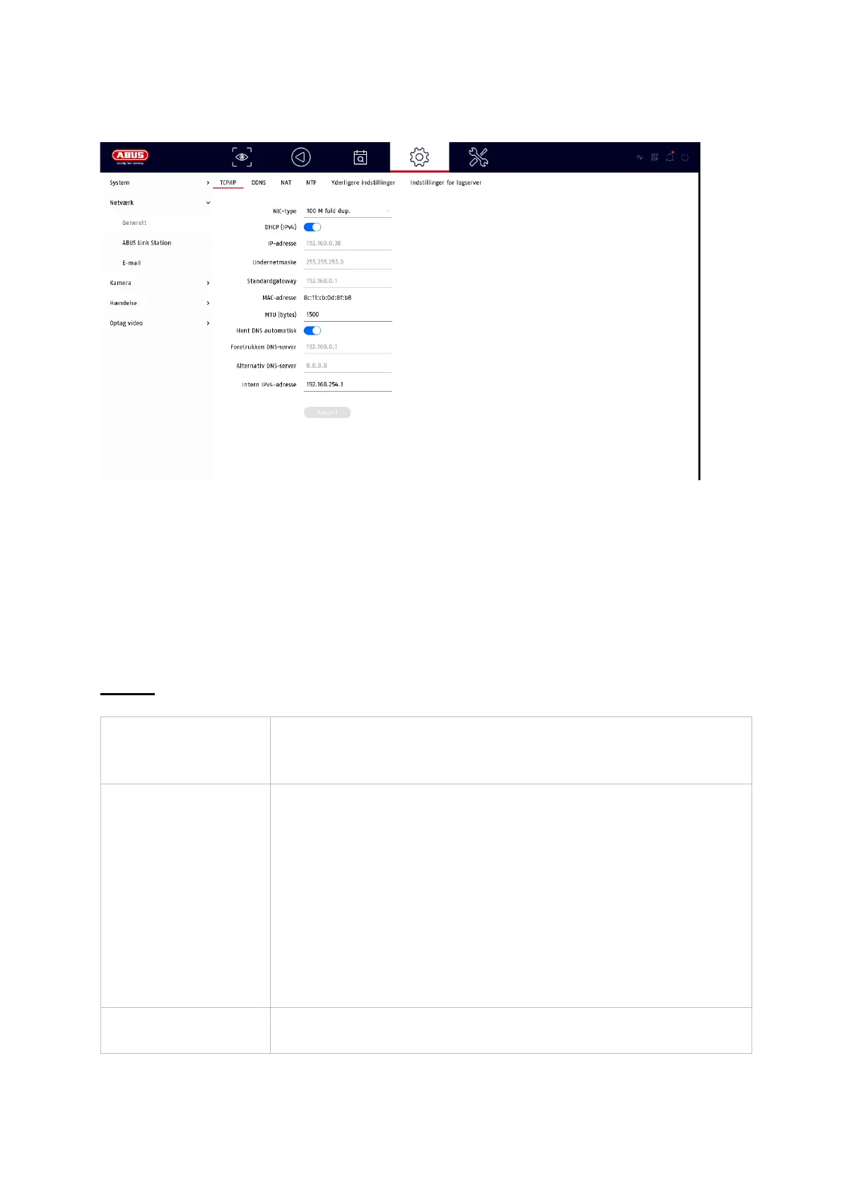 DHCP aktiv: Følgende indtastningsfelter er inaktive, da