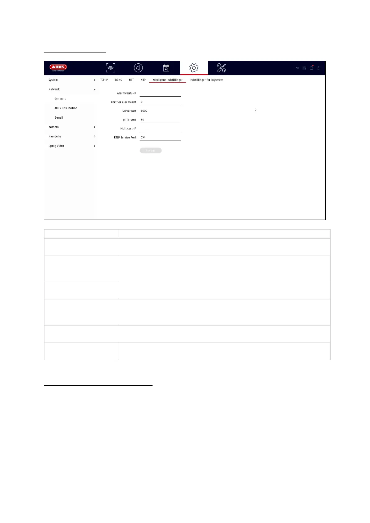 Port til datakommunikation til ABUS CMS og iDVR App /
