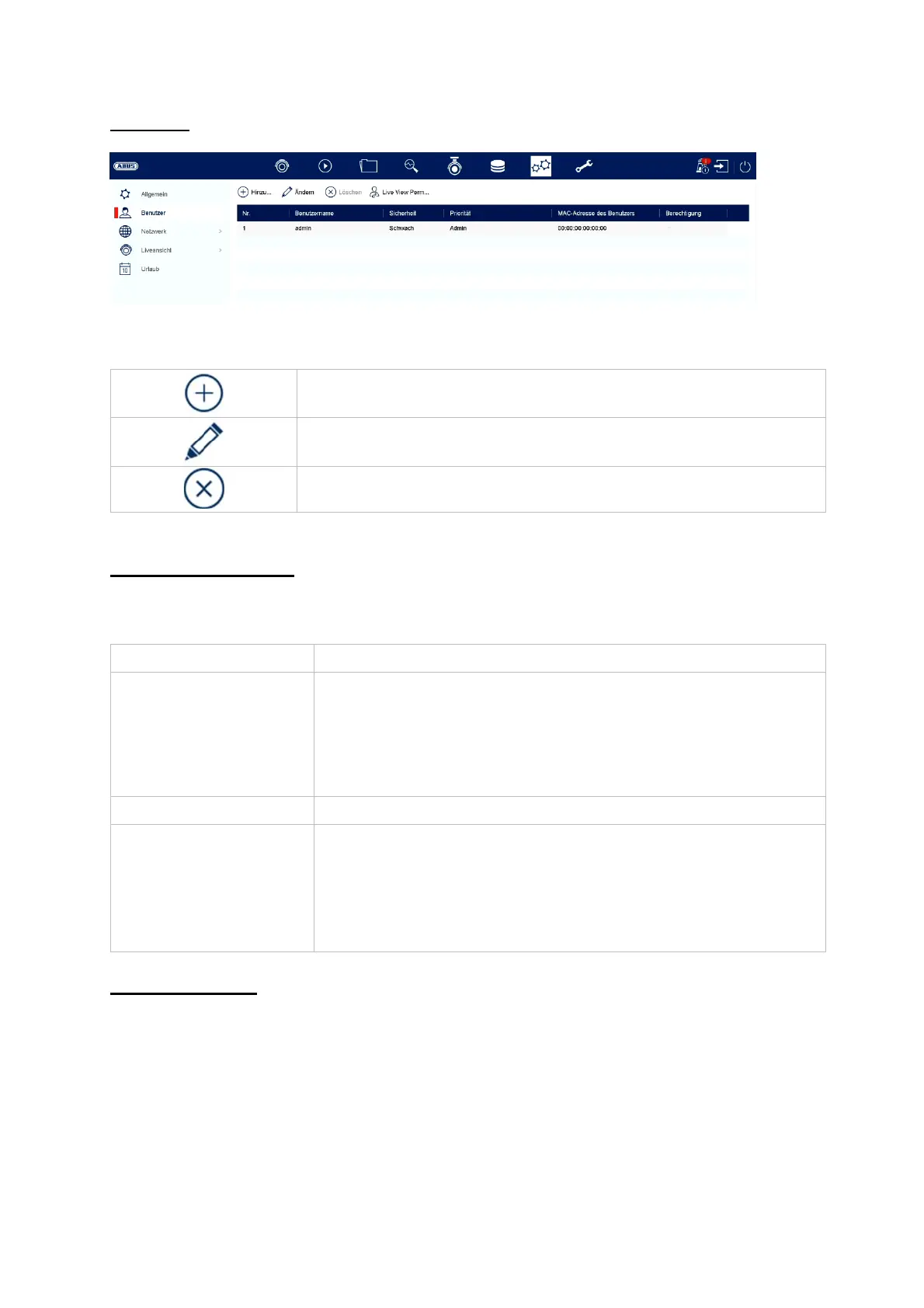 Benutzerberechtigung Wählen Sie die Berechtigungsstufe des Benutzers.