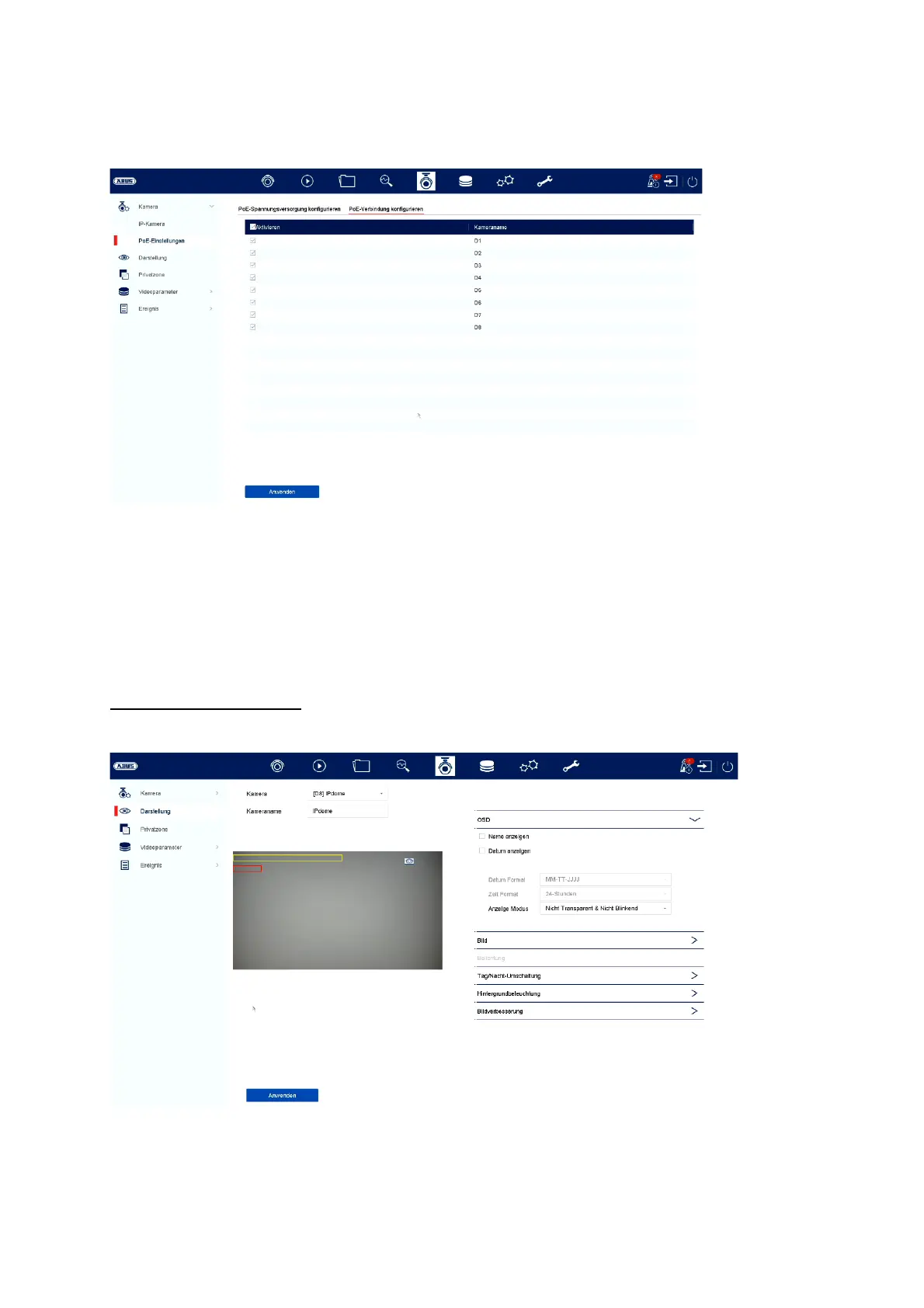 Hier haben Sie Möglichkeit. pro Kamera individuelle Einstellung zur Darstellung der