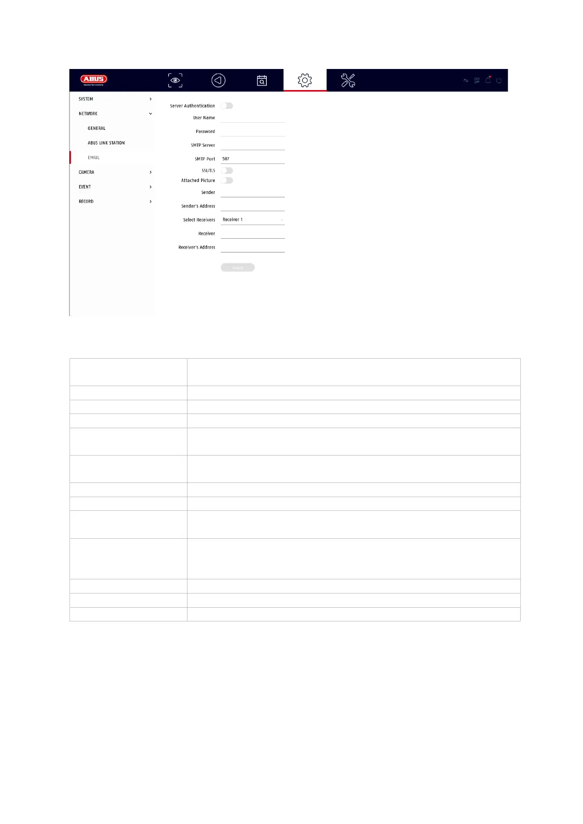 In the event of an alarm, the unit can send a message by email. Enter the email