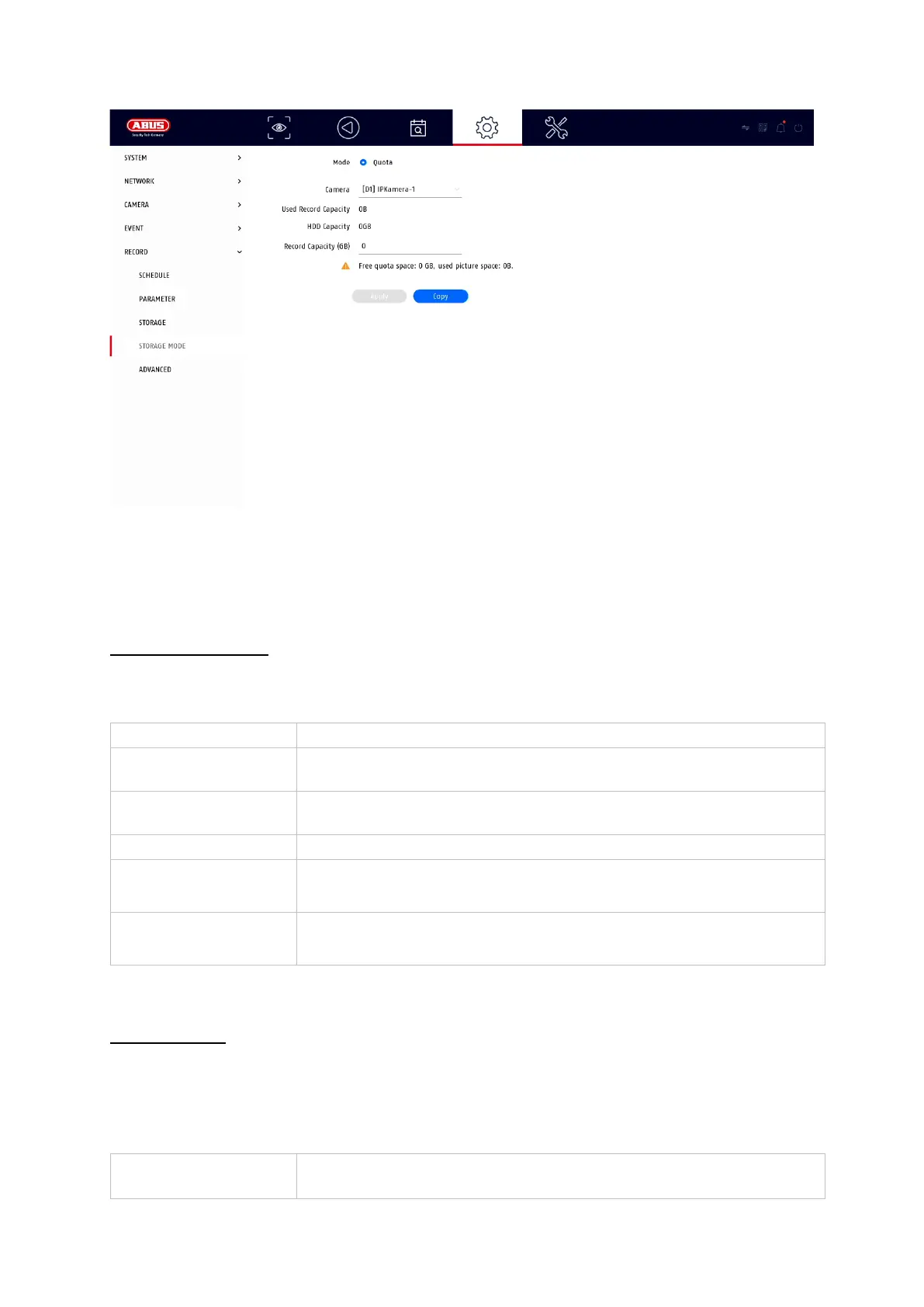 In this menu you set the storage mode of the recorder. Two different storage modes