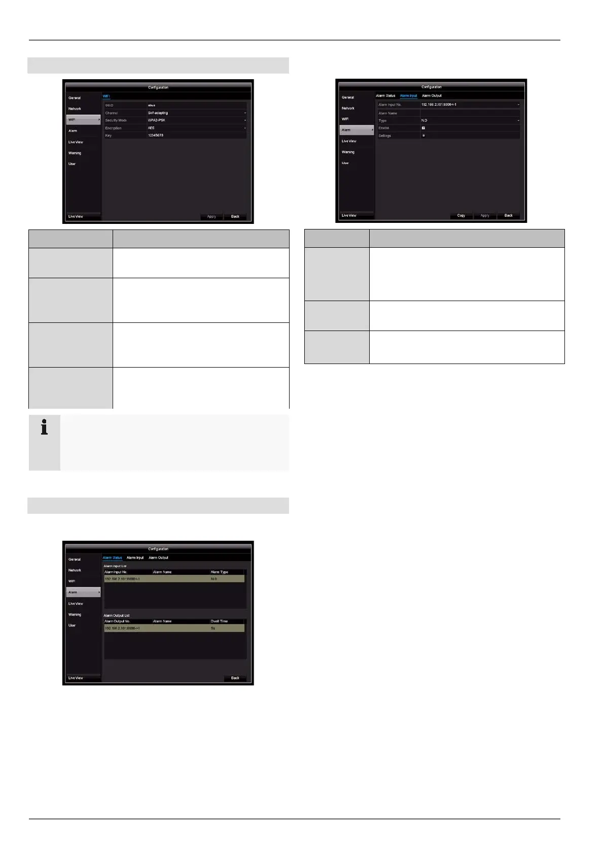 Select the alarm input to adjust the set-