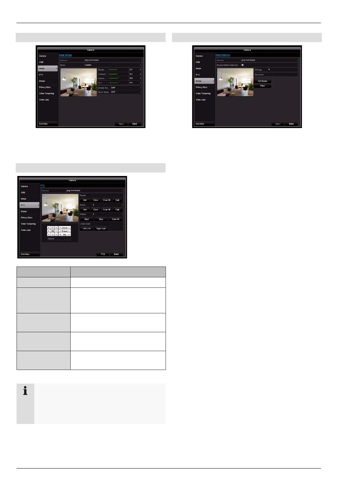 These settings are only relevant for cameras with