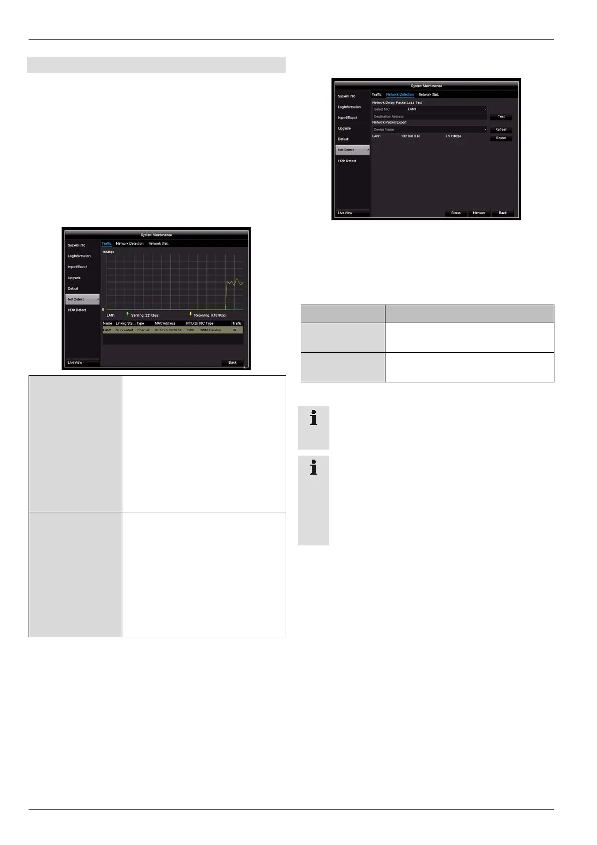 mation for one or two network connections is shown in