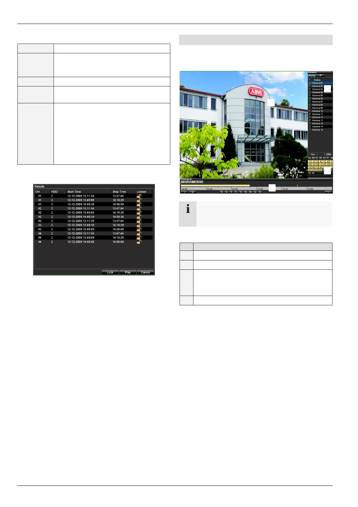 The playback screen is divided into four areas: