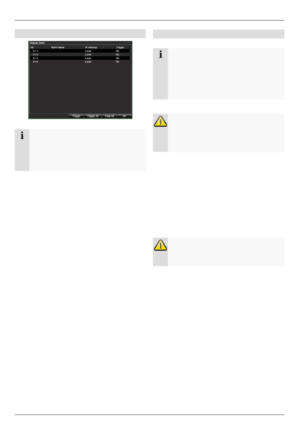 2. Click on Trigger to switch on the alarm manually.