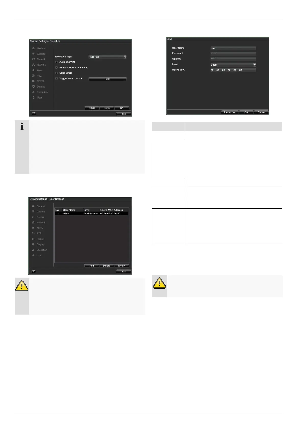 System Settings: Exception