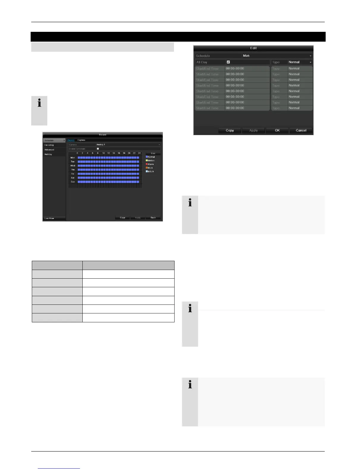 The schedule is used to specify the recording times and