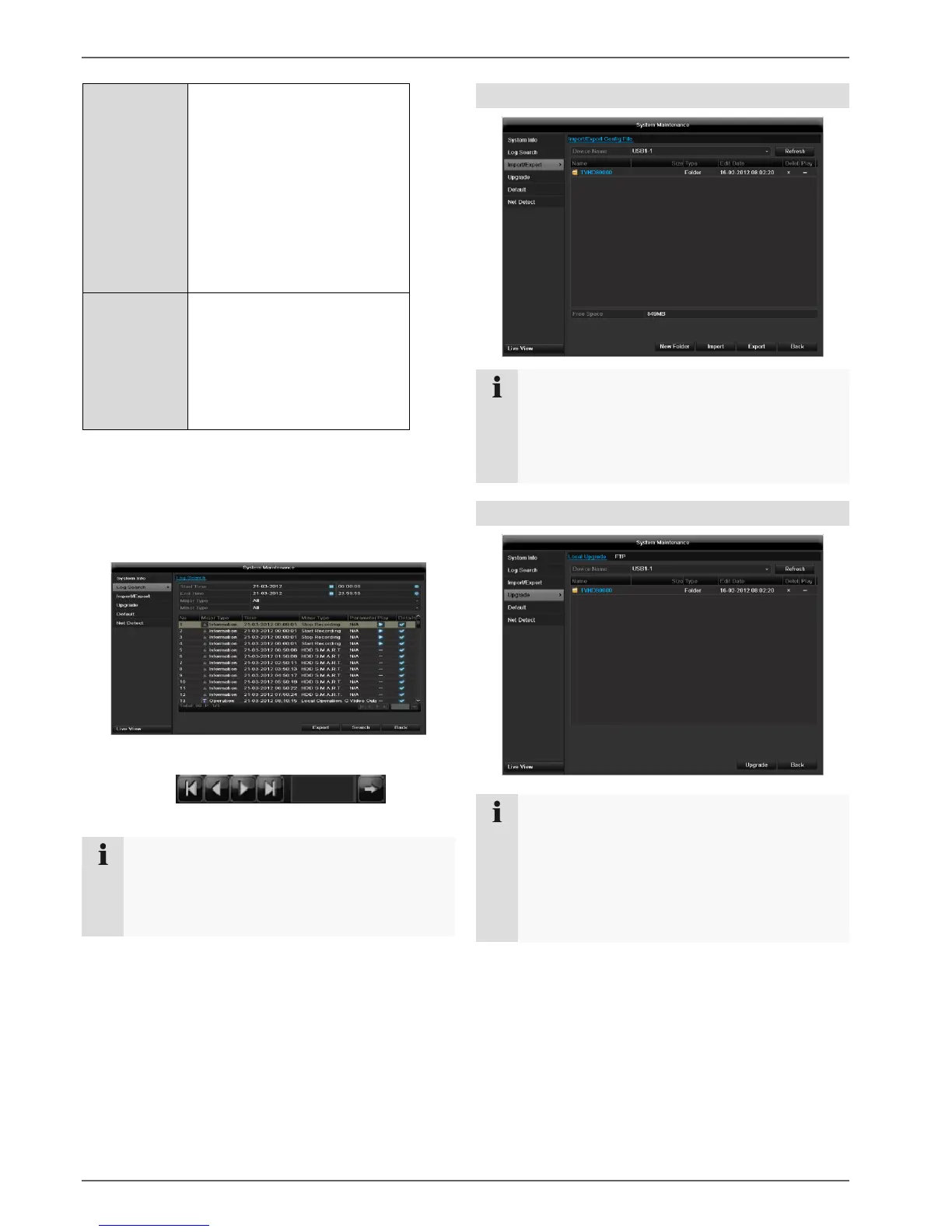 Click on Export to back up the log file on a USB me-