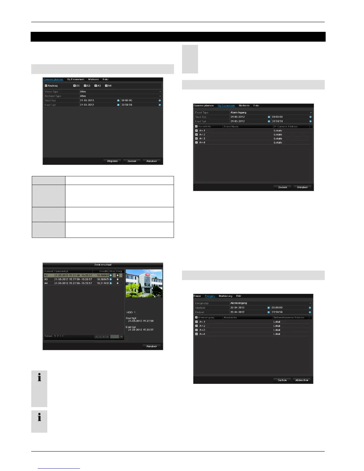 Klik op Zoeken om opnamen te zoeken die voldoen