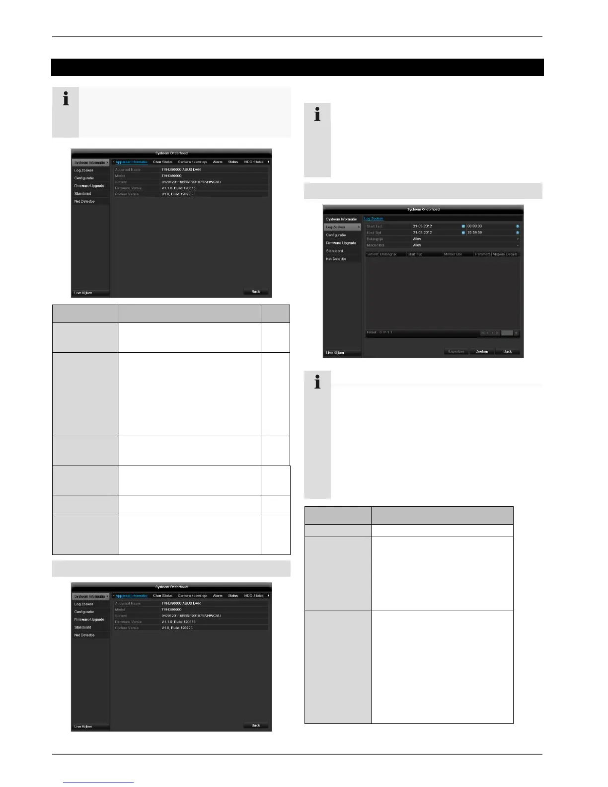 In het informatiemenu worden de technische