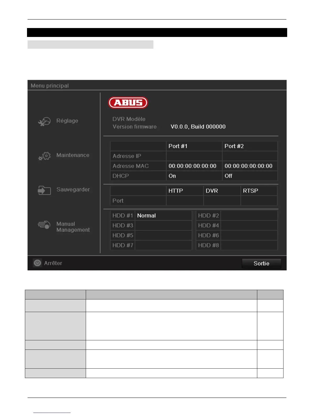 Conduit aux menus Configuration de système, Caméra, Configuration