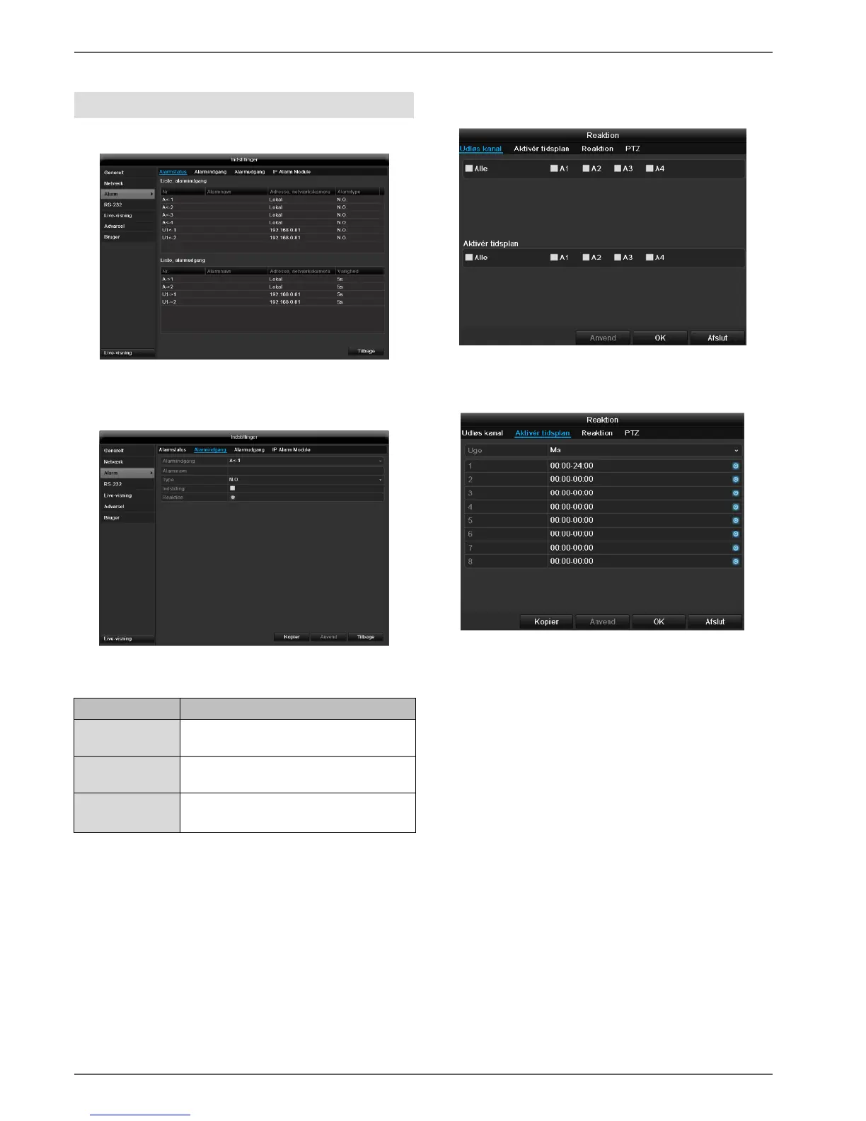 Vælg en reaktion i tilfælde af alarm ved at klikke på