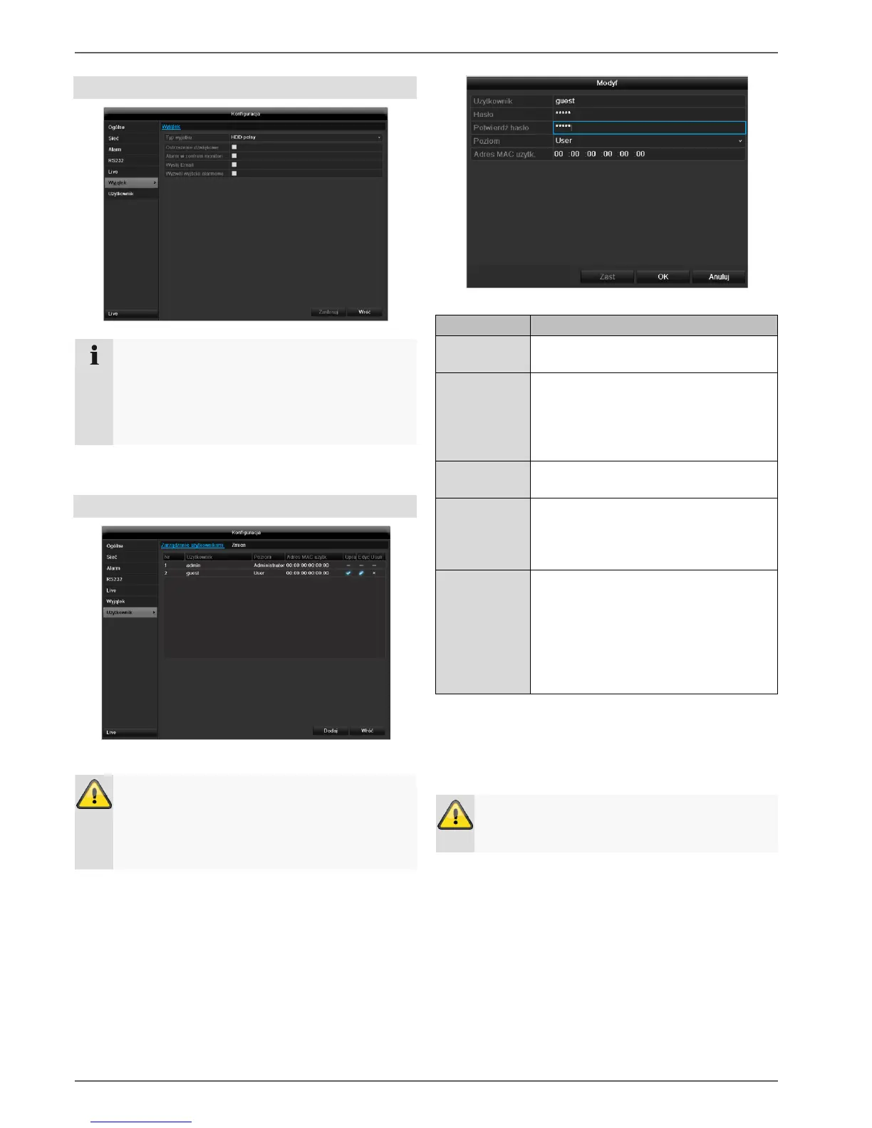 Dla poziomu Użytkownik można