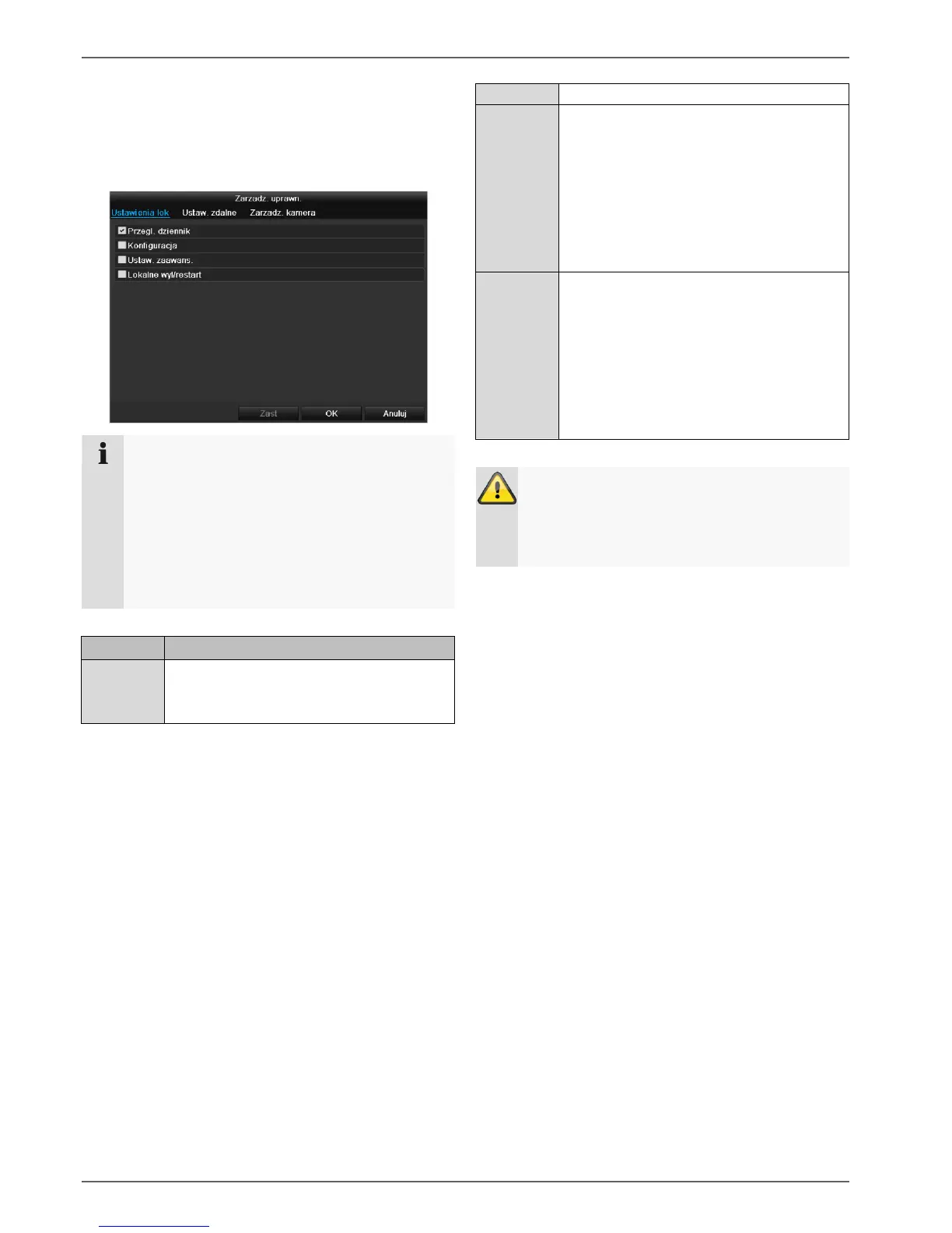 Na ZAKŁADCE Kamera ustawia się uprawnienie