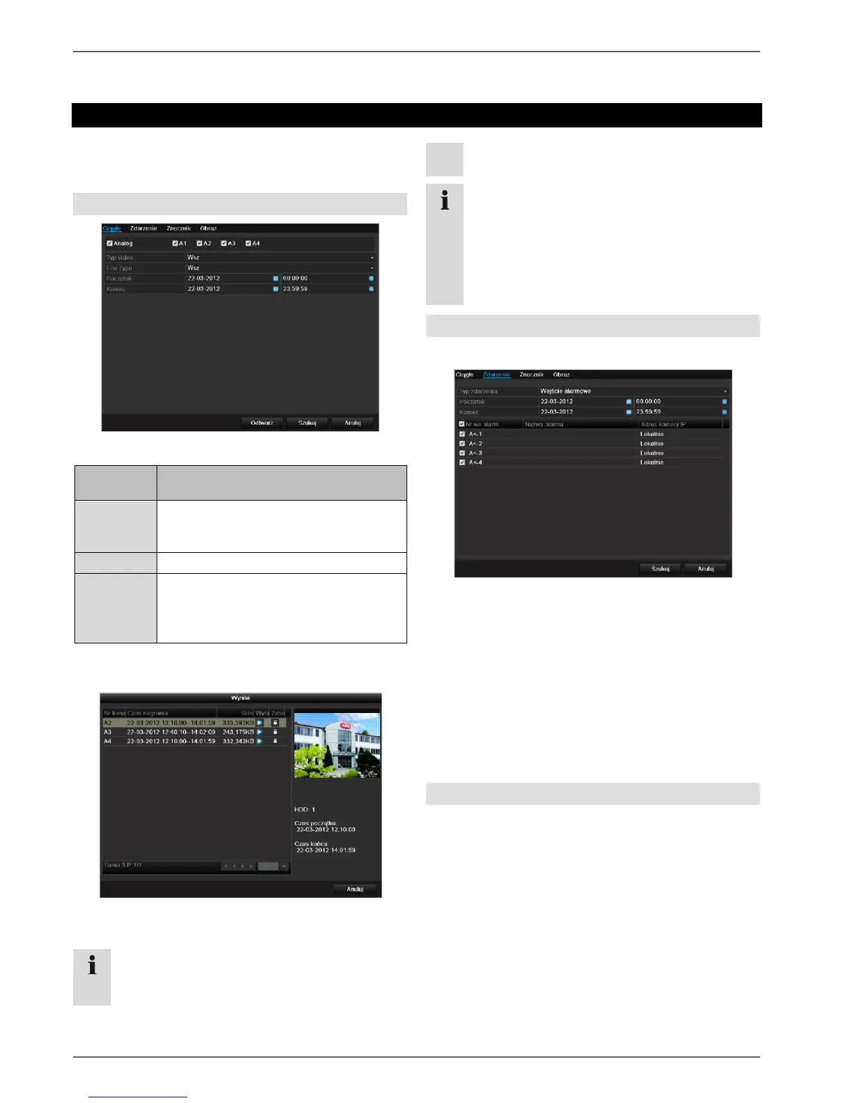 Zapis, aby wyszukać zapisy wideo na podstawie