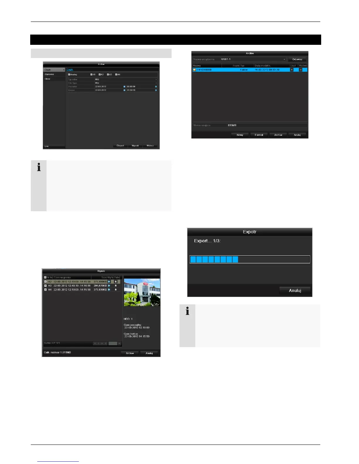 W razie wybrania opcji „Quick Export“ eksportowane