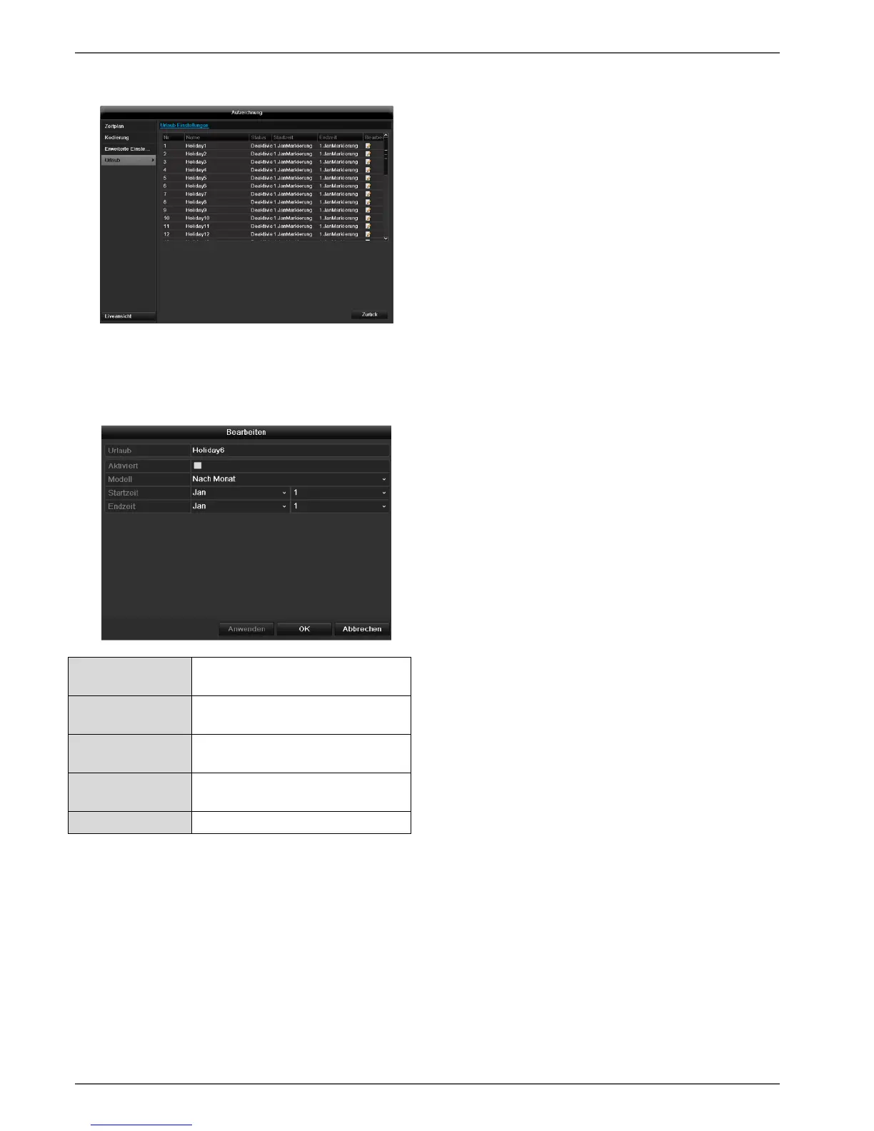 nungseinstellungen für Urlaub oder Feiertage getroffen