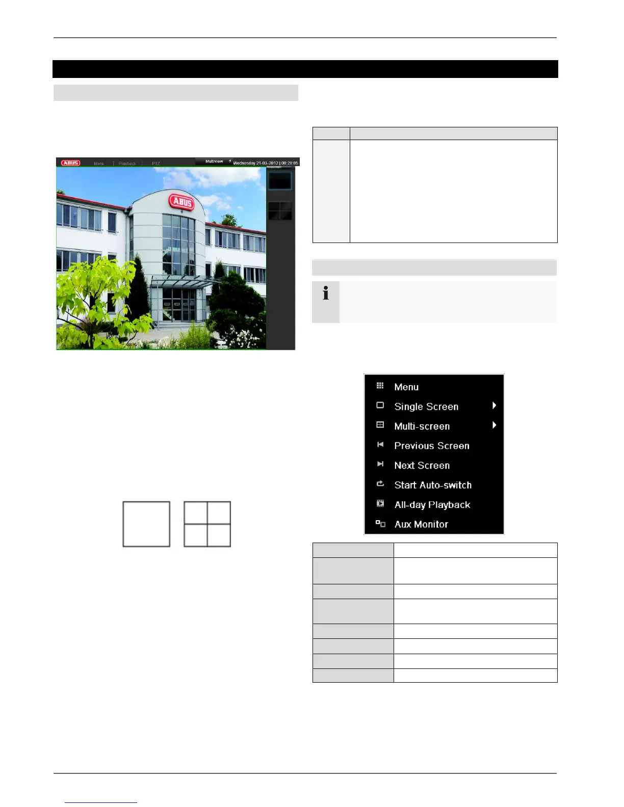 The signals of the connected cameras are displayed on