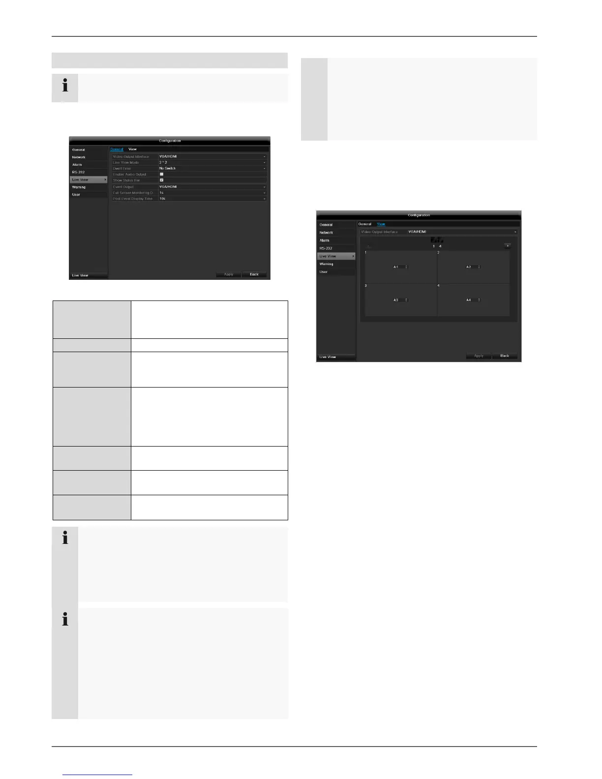The live view can be set as follows.