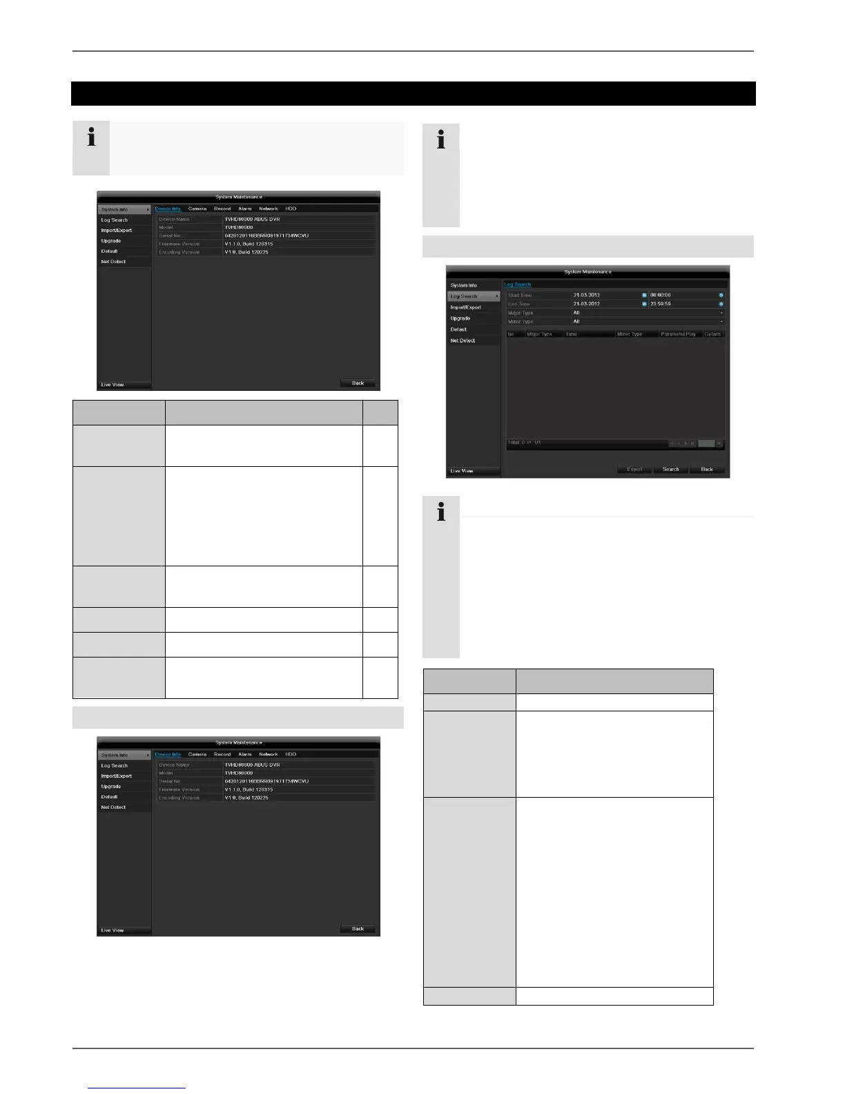 This menu is used for device maintenance, and