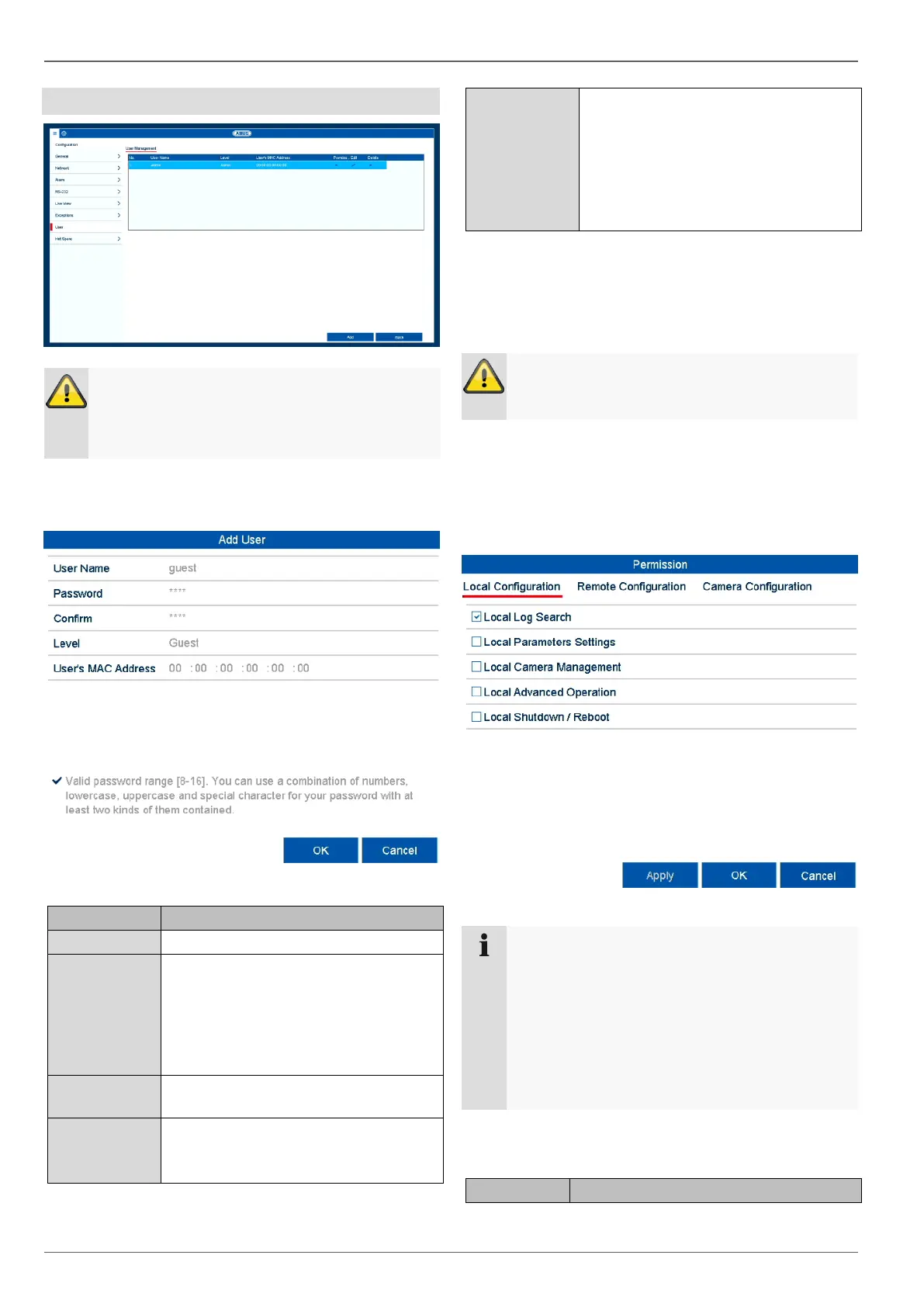 In user management, you can add new users, delete us-