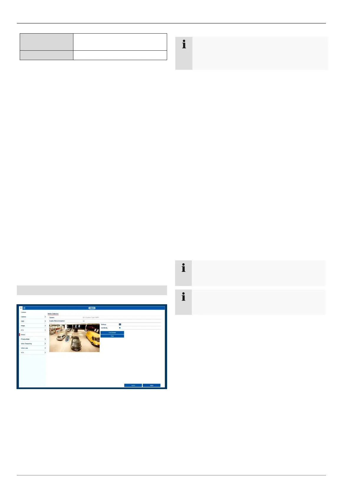 The displayed settings for motion detection are