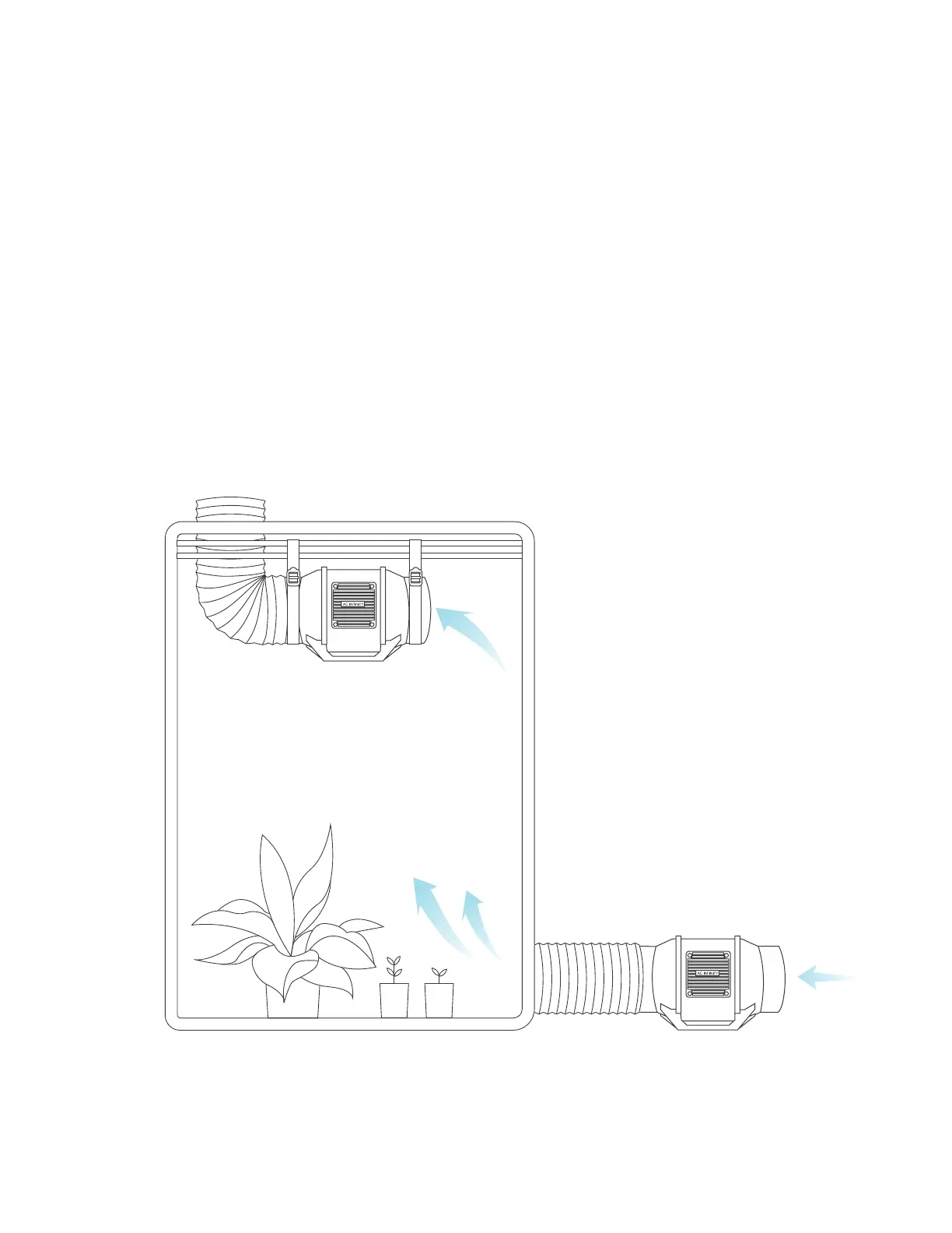 must be situated at a bottom corner of your grow space. The exhaust fan must be hung (shown