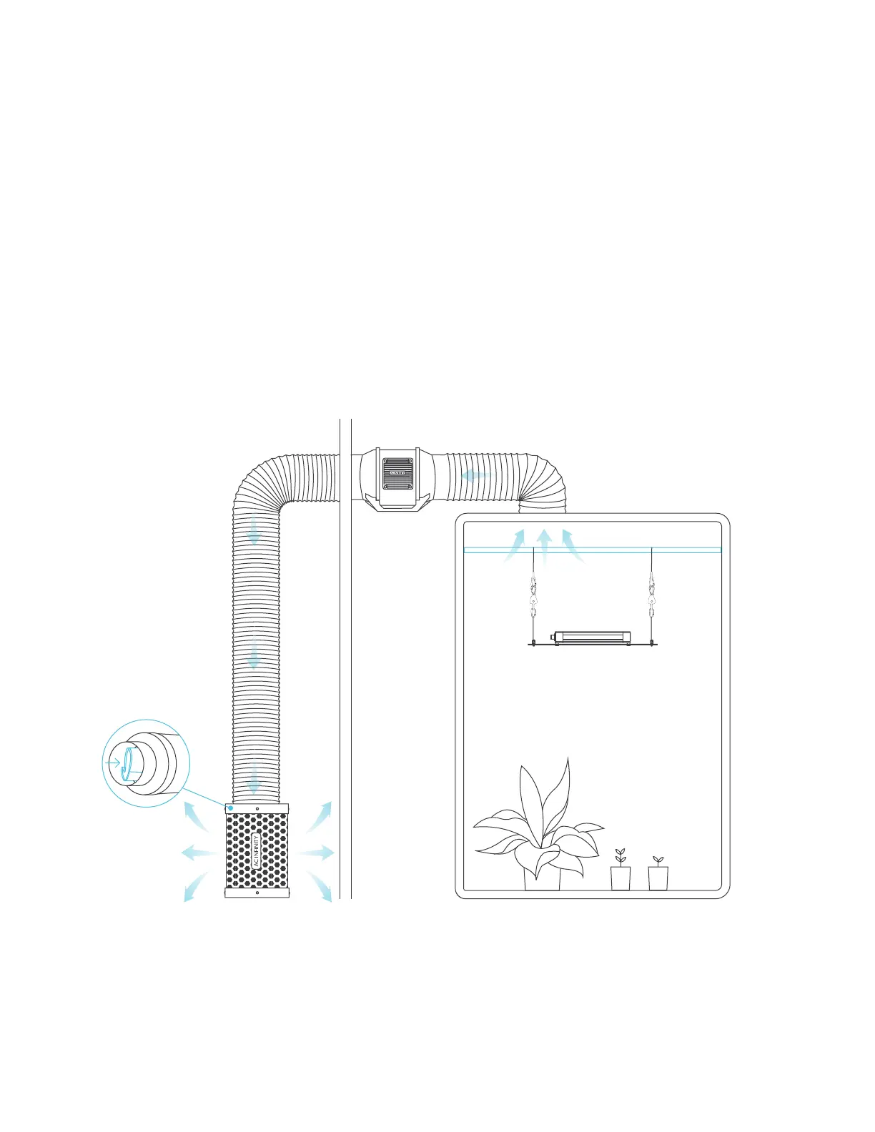 To use this filter in exhaust applications, place the filter outside of your grow space. Make sure