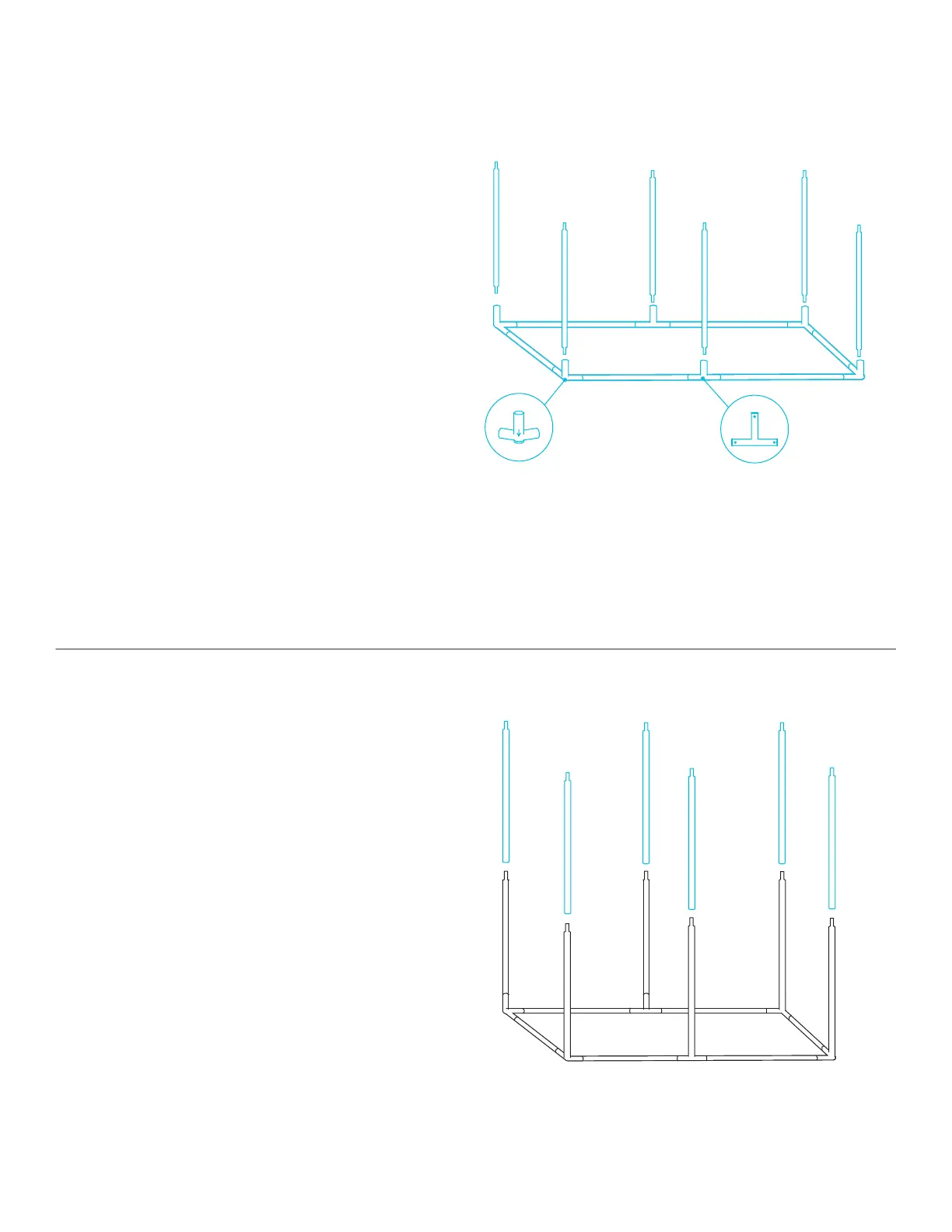Insert the six (B) poles into the corner (D1)
