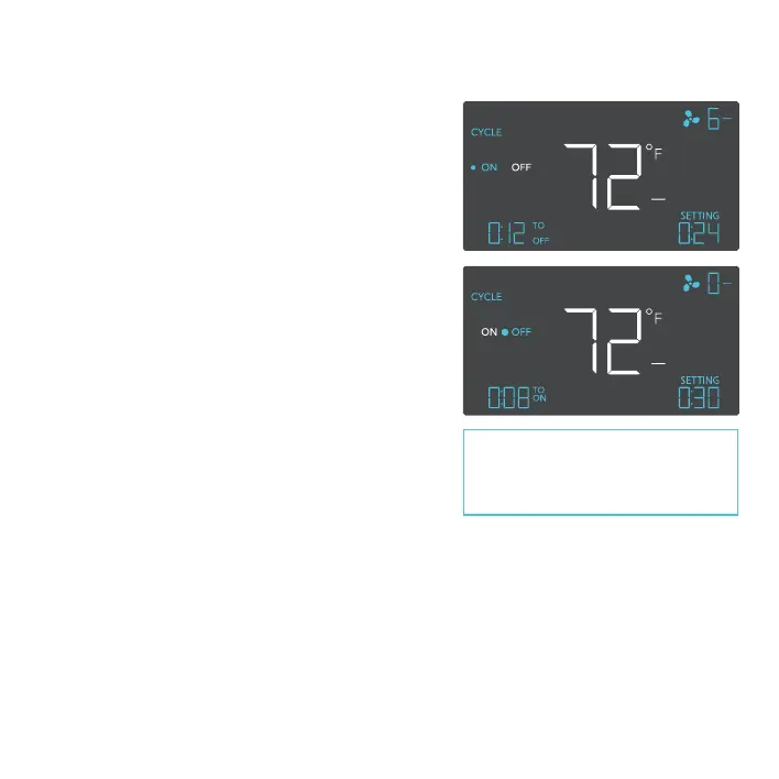 Set an on duration and an off duration for the fan to