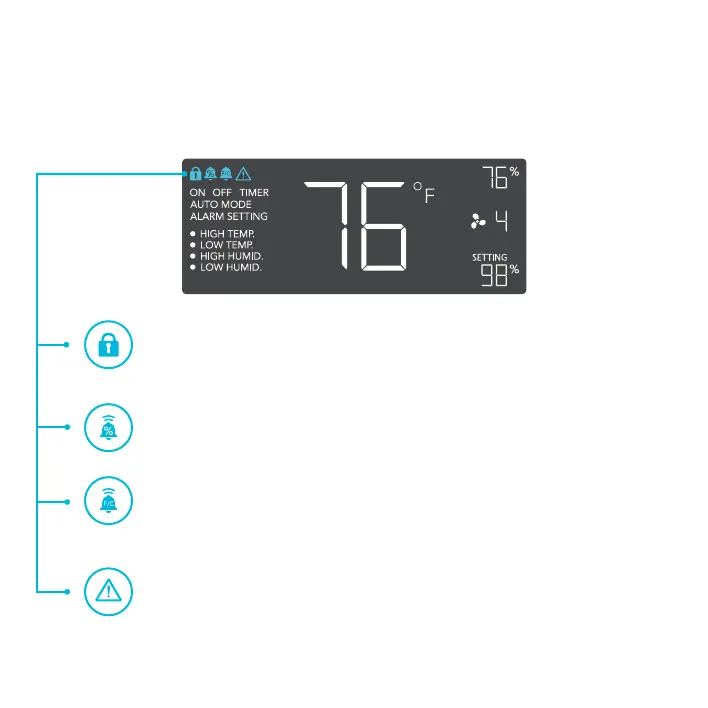 The top left of the display shows the alert icons. Icons may flash when the controller signals an