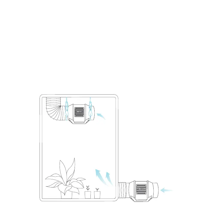 situated at a bottom corner of your grow space. The exhaust fan must be hung (shown below) or