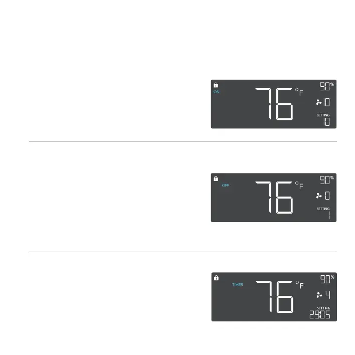 settings: ON Mode, OFF Mode, TIMER Mode, AUTO Mode (4 triggers), ALARM Settings (4 settings).