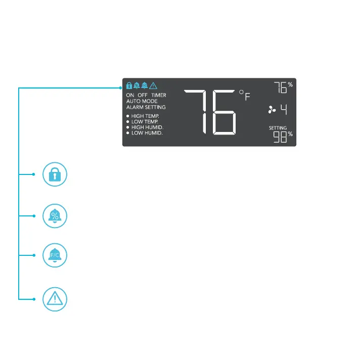 On the top left of the display is the alert icon section. Icons may flash when the controller wishes to