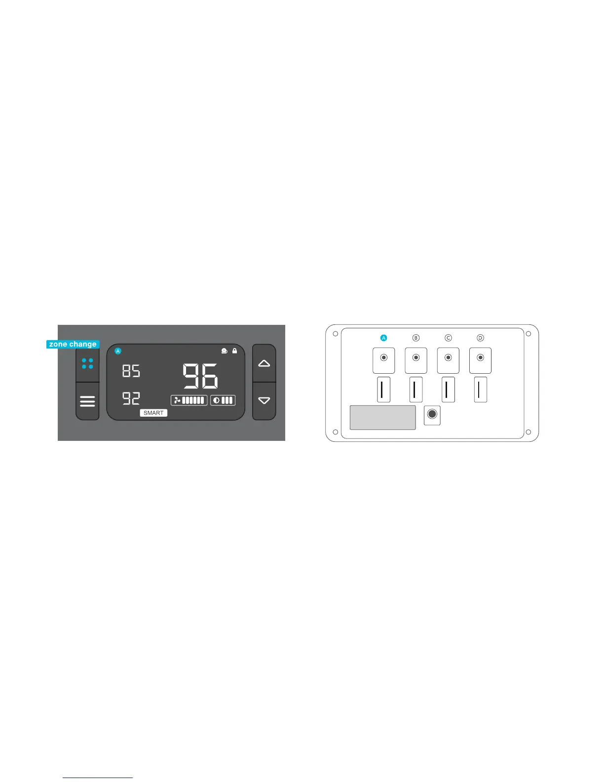 will cycle through these zones as shown by A, B, C, and D icons on the LCD display.