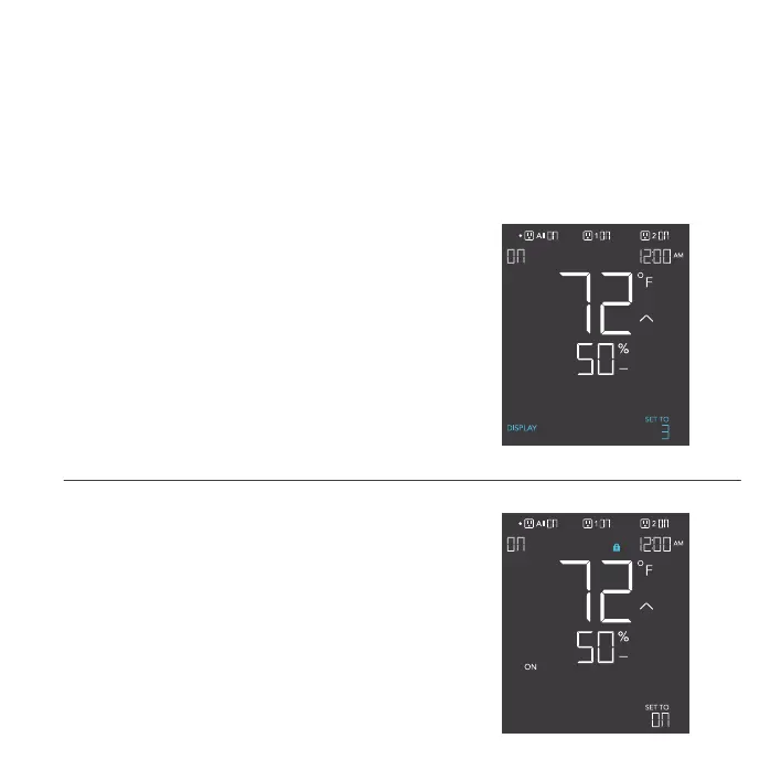 Pressing the setting button will cycle through the controller’s available settings: DISPLAY, °F/ °C,