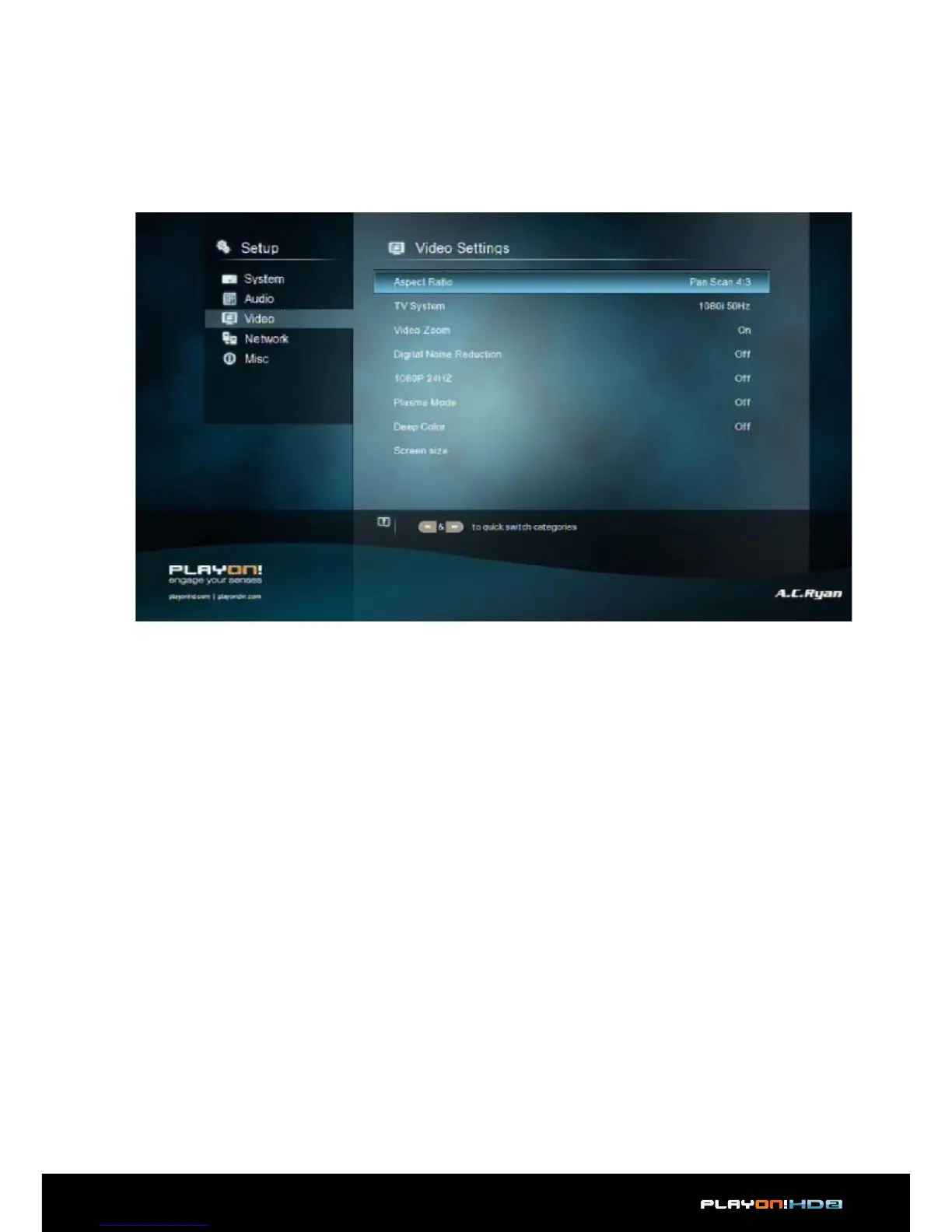 bottom of 4:3 screen. Select when a standard 4:3 TV is connected.