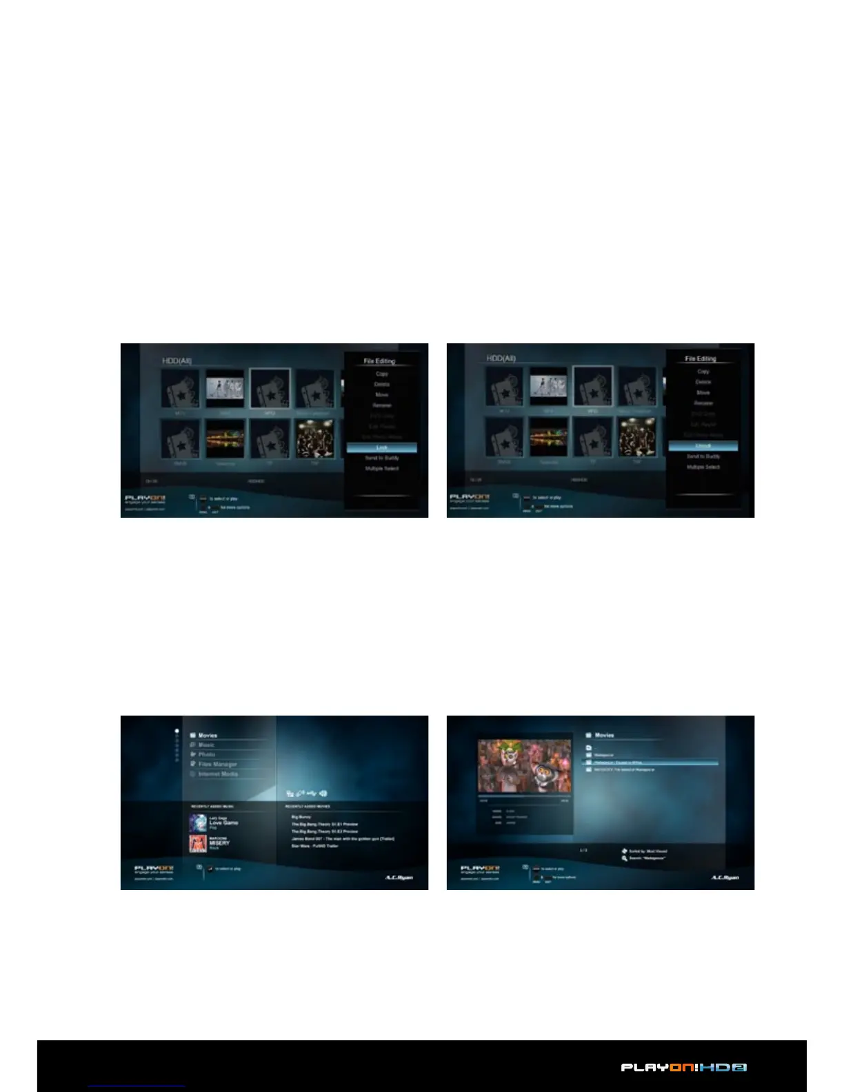 Enter into movie interface, only supported files will be displayed. Please refer to Ap-