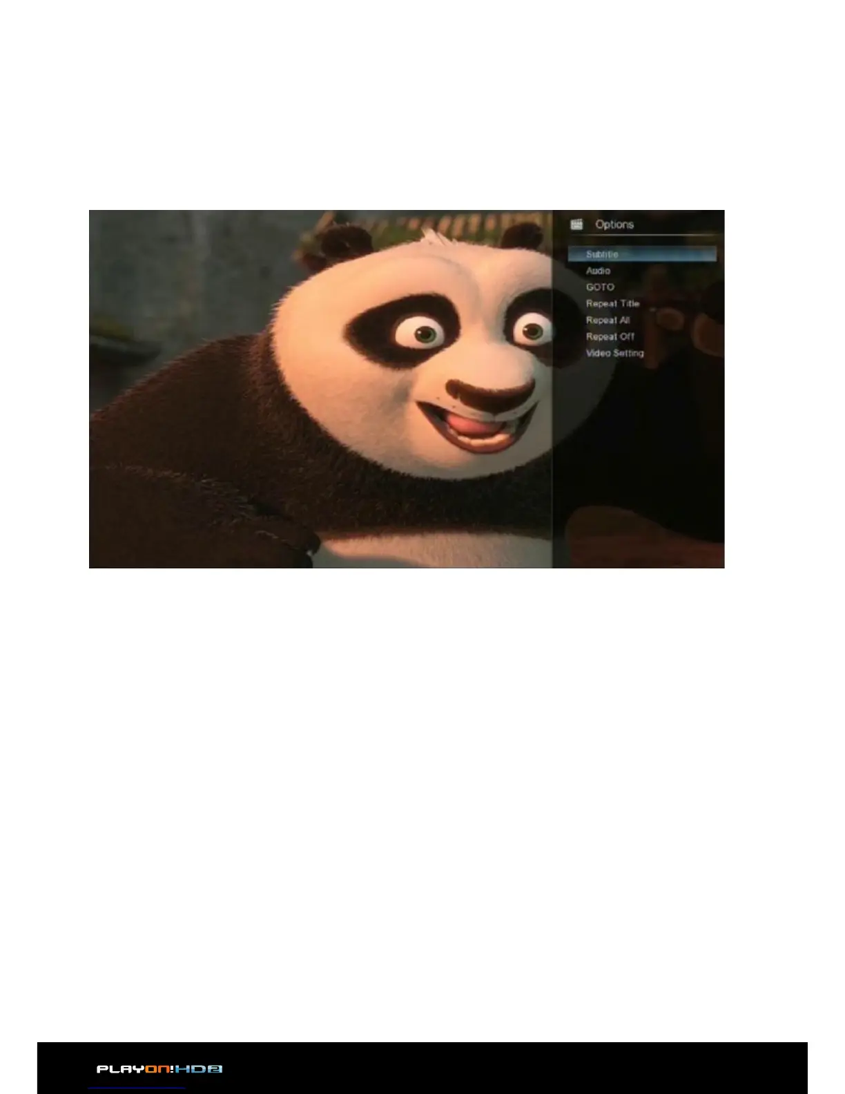 You can also access functions such as audio track, subtitle and repeat mode through