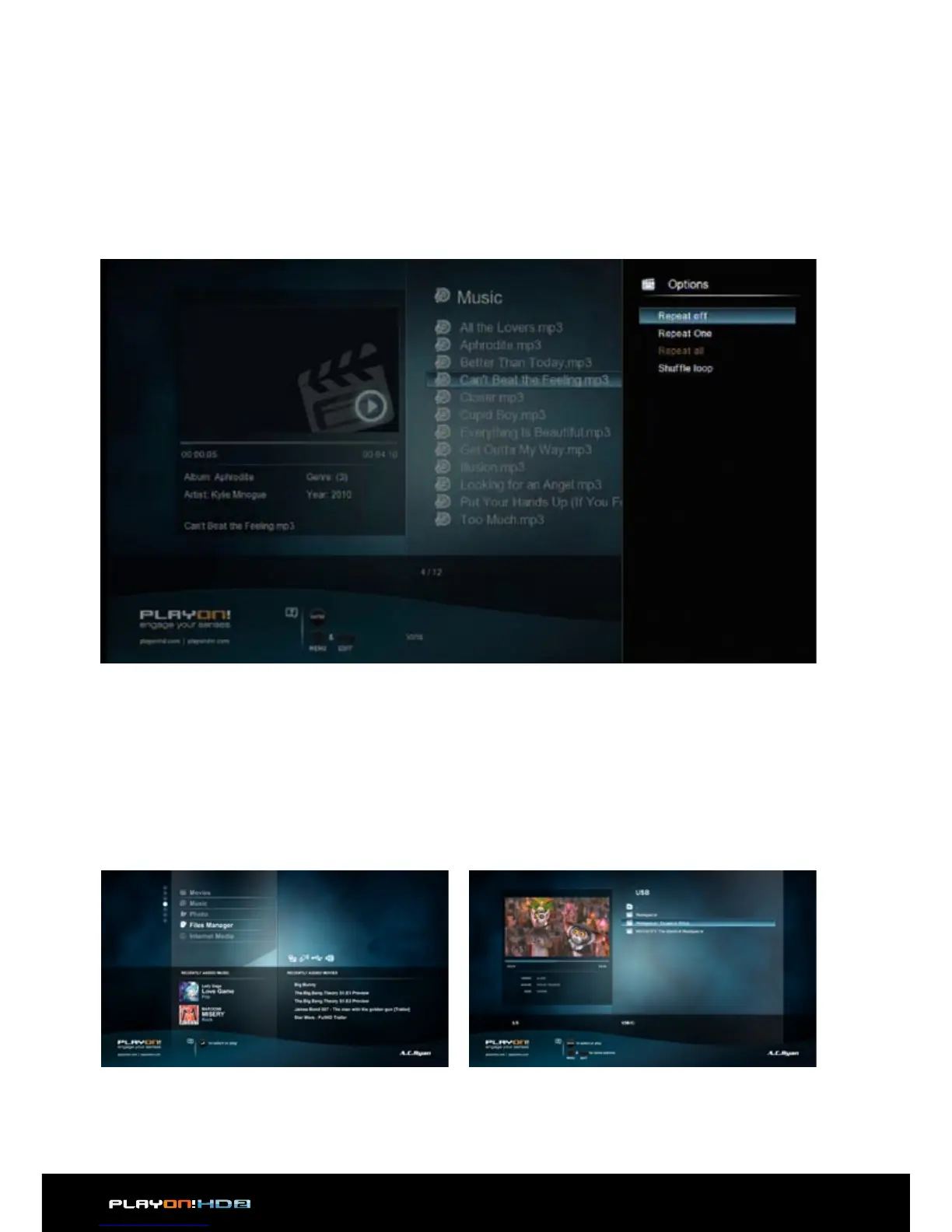 • Choose a repeat mode among Repeat o, Repeat one, Repeat all and Shue