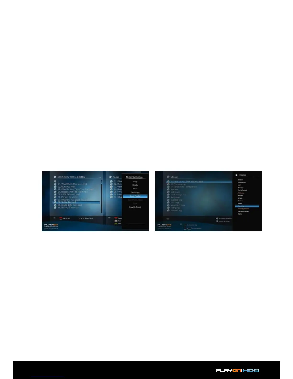 lists available on your external USB devices.